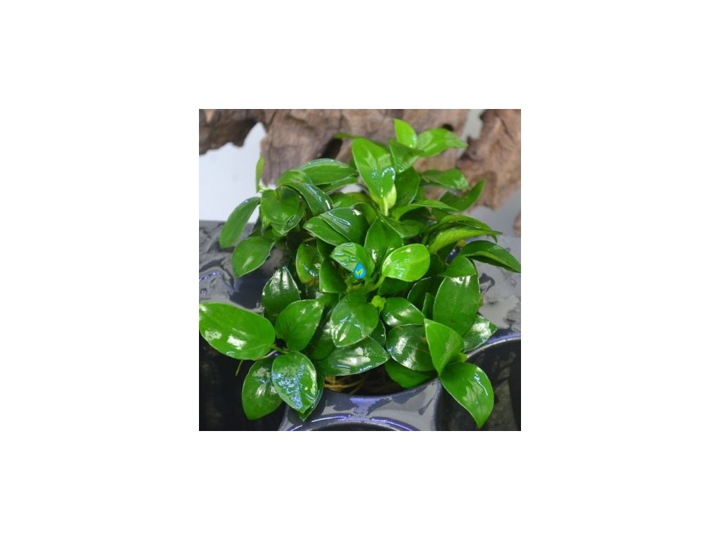Zakrpatená forma Anubias nana, veľmi dekoratívna. Má kožovité, veľmi tuhé, srdcovité listy asi 2-3cm cm dlhé a asi 1-2 cm široké. Listy sú tmavo zelené, veľmi dekoratívne, na krátkych stopkách s mohutným koreňovým systémom.