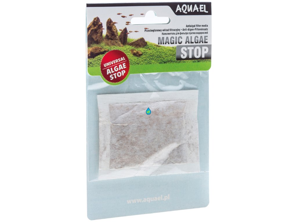 AQUAEL MAGIC ALGAE STOP je vo forme malého vrecúška. Vďaka svojim jedinečným vlastnostiam brzdí rast zelených rias a odstraňuje riasy z vody, aby sa voda opäť stala priezračnou.
