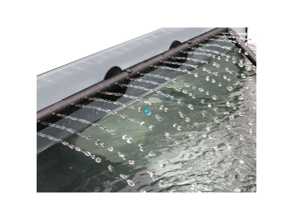 Na jednom konci trubice sa nachádza zátka a na druhom - spojka na hadicu, ktorou je voda z filtra transportovaná späť do nádrže. Voda vyteká cez otvory v dažďovnici a vytvára radu paralelných prúdov.