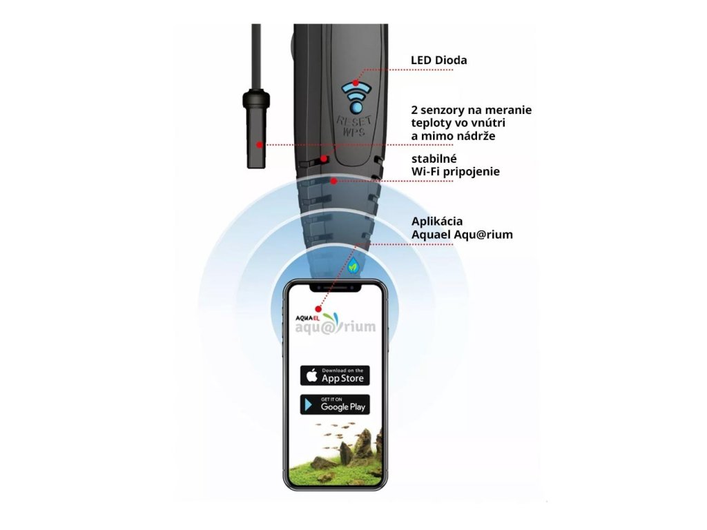 AQUAEL Thermometer Link je prvý elektronický teplomer ovládaný cez mobilnú aplikáciu Aquael Aqu@rium.