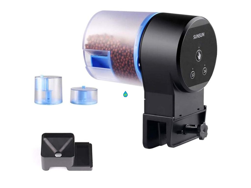 Automatické kŕmidlo SunSun dokáže podávať krmivo vo forme granúl s priemerom do 3 mm a každé vo forme vločiek.
