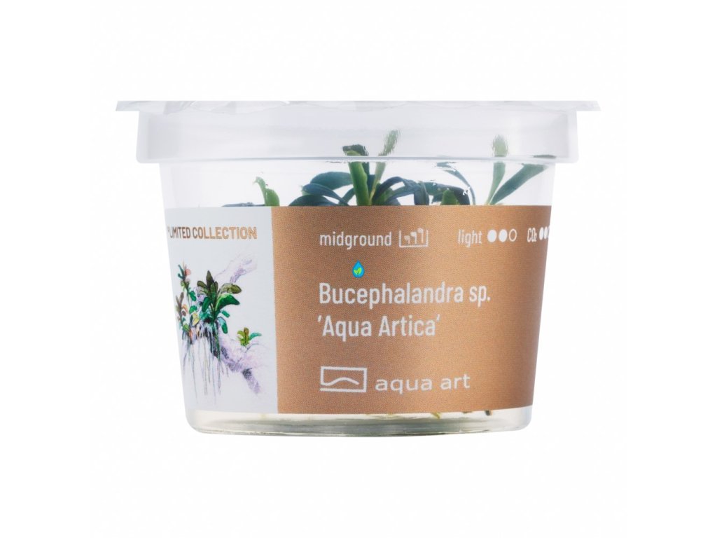 Bucephalandra sp. 'Aqua Artica' je atraktívna, zberateľská forma bucephalandry , známa pre svoje jemne zvlnené listy s kovovým, modrastým až fialovým leskom.