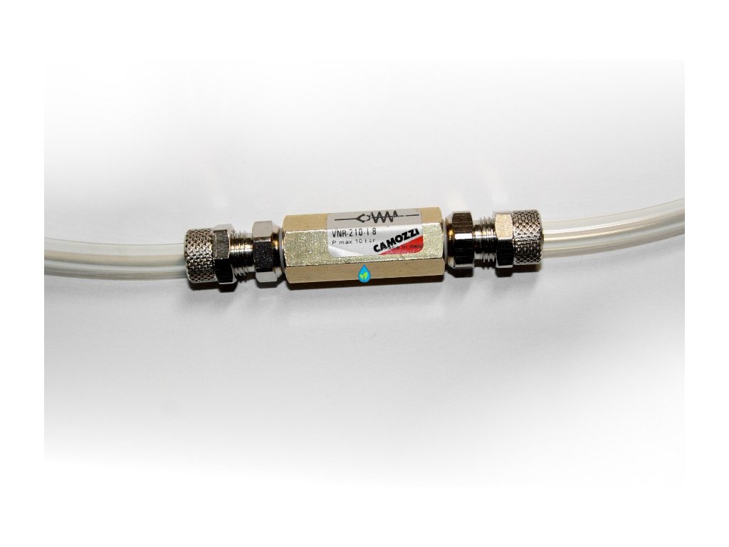 Kovový, robustný spätný ventil do CO2 systému.