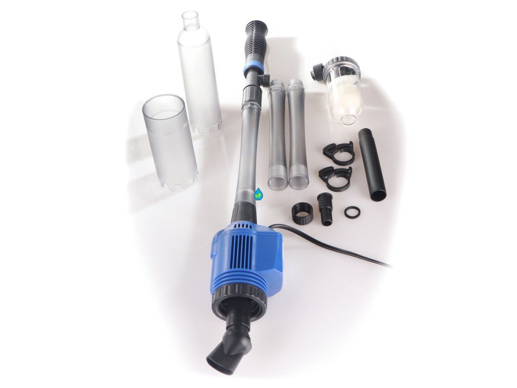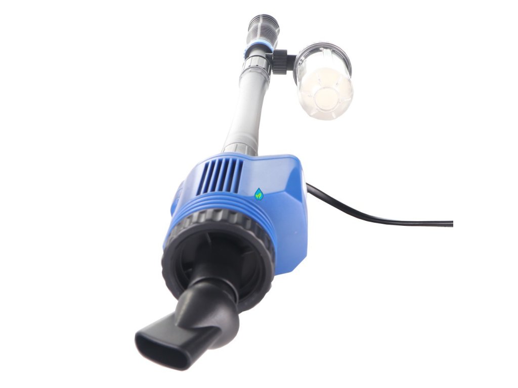 Veľmi solídne spracovanie, s vysokým sacím výkonom 16W. Úplne vodotesný, možno ho ponoriť do vody. Je tu možnosť čistenia v uzavretom okruhu, bez vylievania vody z akvária alebo s výmenou vody, po pripojení výstupnej hadice.