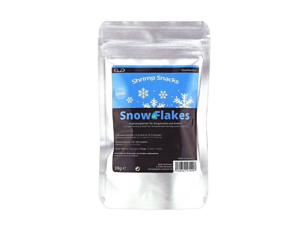 GlasGarten Shrimp Snacks Snow Flakes je krmivo, ktoré obsahuje množstvo vitamínov, minerálov, stopových prvkoch a omnoho viac. Tieto zložky vytvárajú vynikajúcu doplnok ku komplexným krmivám pre krevetky. Vďaka tomu, že sa krmivo rozpadne na viacero kúskov má prospešný efekt aj pre mladé krevetky, ktoré sa bez stresu dostanú ku krmivu.