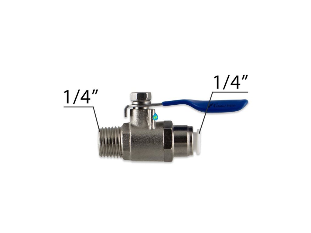 Mosadzný guľový ventil 1/4" s rýchlospojkou pre RO hadičku x 1/4"