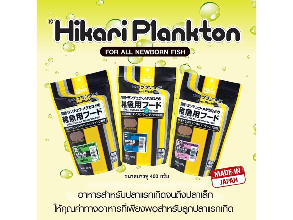 - S krmivom Hikari Plankton Vám vyrastú z poteru zdravé ryby bez defektov a deformácií.