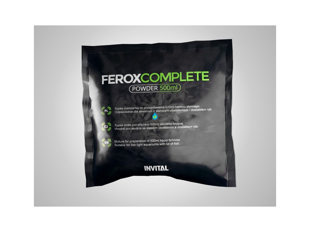 INVITAL FEROX COMPLETE je vysoko koncentrované hnojivo obsahujúce vysoké dávky železa, mikroprvkov a draslíka vo forme prístupnej rastlinám. Neobsahuje dusík a fosfor, ktoré bývajú v bežných akváriách zastúpené vďaka odpadovým látkam z rýb v dostatočnom množstve. Je určený pre bežné akvária s väčšími rybami. Ak prevádzkujete akvárium dobre osvetlené, použite INVITAL FEROX COMPLETE NPK, ktorý obsahuje aj dusík a fosfor vo vhodnom pomere.