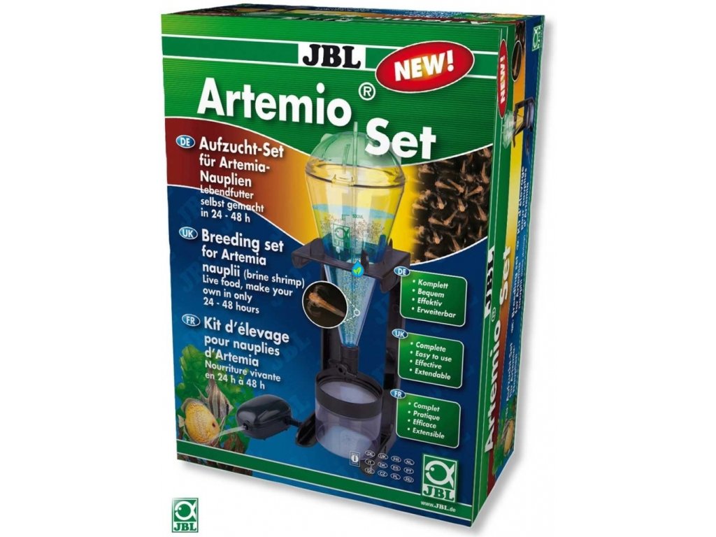 Inkubačnú nádrž vložte do priloženého stojanu. Naplňte vodou, pridajte špeciálnu soľ a vajíčka Artemie (nie je súčasťou dodávky). Inkubačná nádrž zatvorte. Pripojte vzduchové čerpadlo a nechajte prevzdušňovať 24-48 hodín. Otvorte inkubačnú nádobu spodným zatváracím kohútom. Vodu vypustite cez sitko a oddeľte ju tak od živého krmiva.