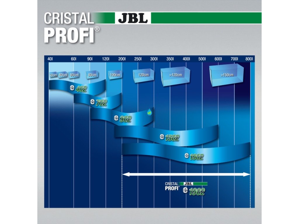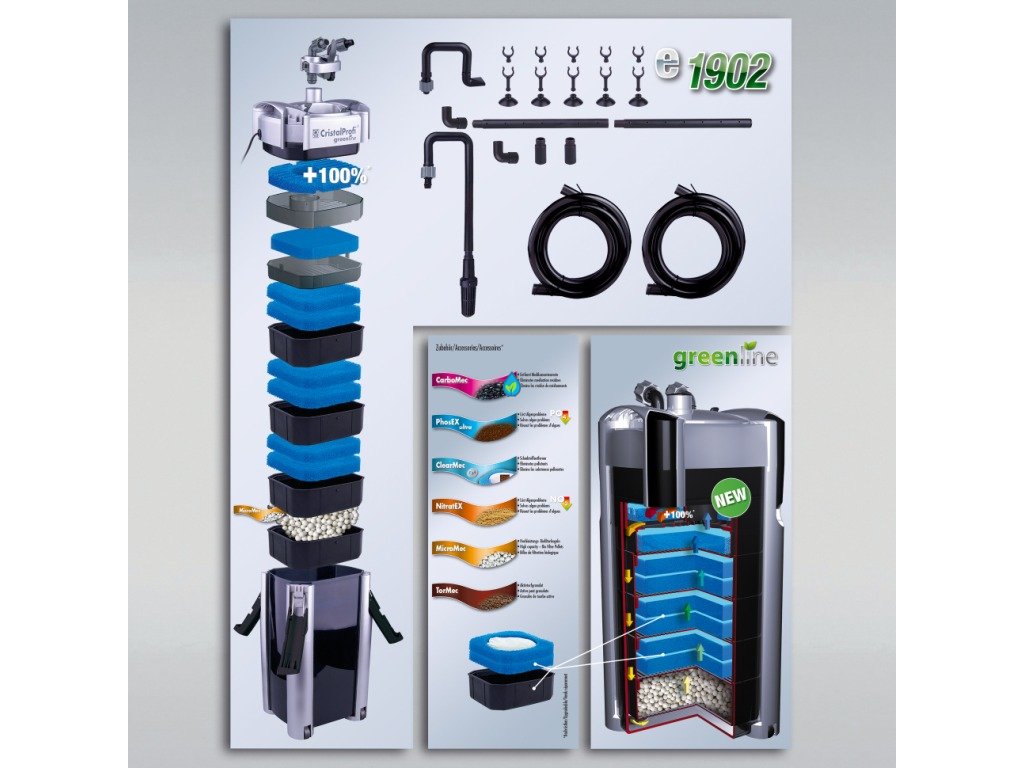 JBL CristalProfi e1902 greenline je kompletne vybavený filtračnými médiami, ktoré sa ľahko vymieňajú, má zabudované zariadenie \"rýchly štart\", ktoré umožňuje okamžitú prevádzku filtra bez zdĺhavého nasávania vody.
