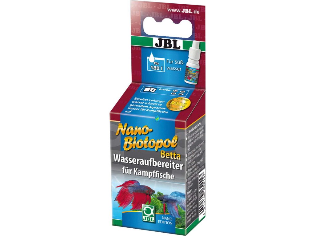 Nano-Biotopol Betta je prípravok na úpravu vody, ktorý bol špeciálne vyvinutý pre malé akváriá a zohľadňuje ich špeciálne potreby, aby umožnil správnu a profesionálnu starostlivosť o vodu ich obyvateľov. Vzhľadom na malý objem vody môže veľmi rýchlo dôjsť k nerovnováhe, ktorej sa dá predísť špeciálnymi výrobkami na starostlivosť a výživu z radu Nano od JBL.