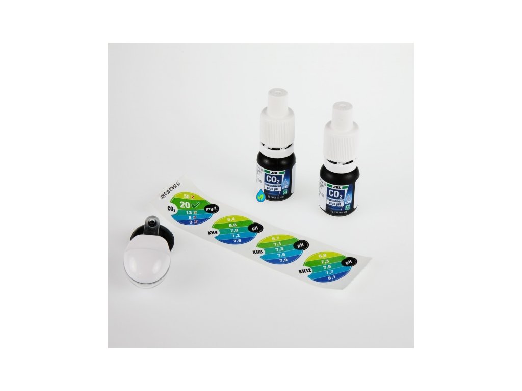 Z pH hodnoty danej obsahom CO2 a uhličitanovou tvrdosťou vody je možné na farebnej škále odpočítať aj obsah vo vode rozpusteného CO2.