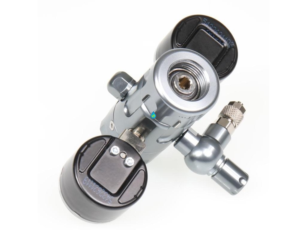 Regulátor má dva tlakomery, ktoré spoľahlivo a presne ukazujú tlak vo fľaši a pracovný tlak.
