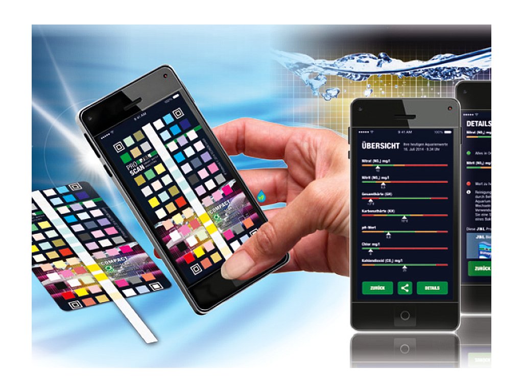 → kvalitné, rýchle a jednoduché meranie vody vďaka priloženým testovacím prúžkom, JBL Proscan karte a vášho smartphonu