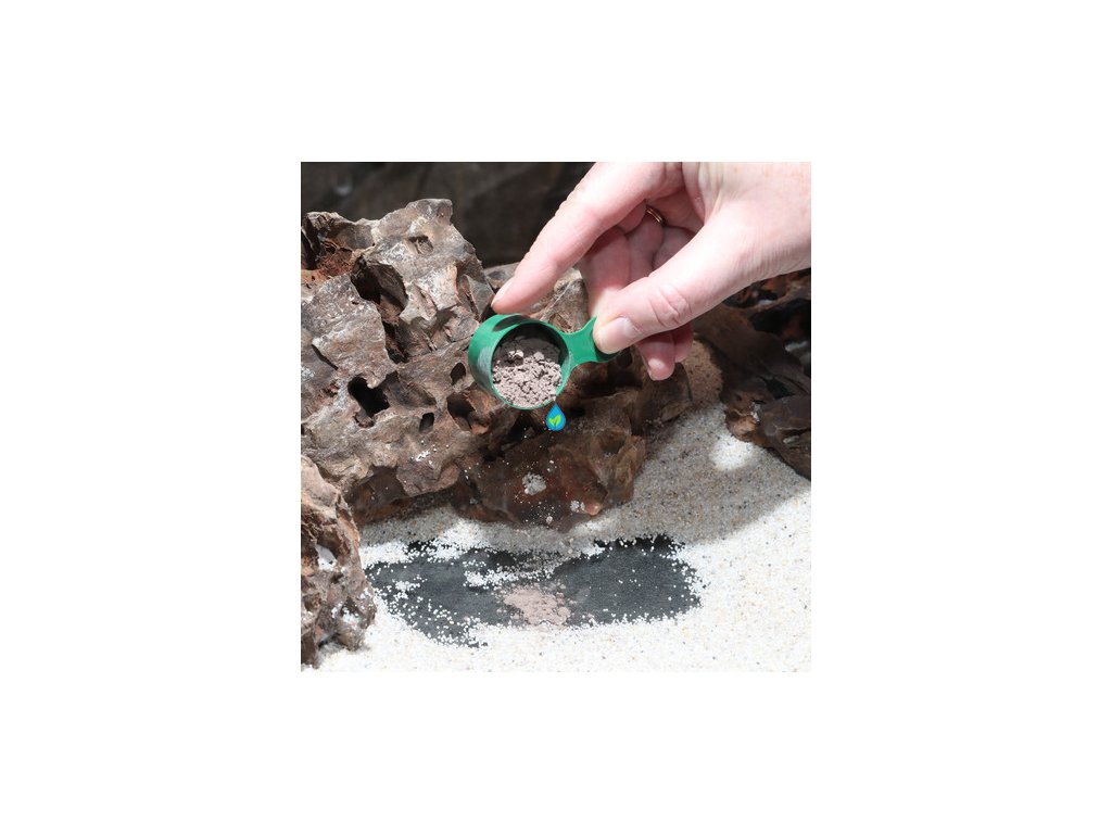 JBL ProScape Volcano Powder dávkujeme pri zariaďovaní akvária priamo na spodok alebo ním môžeme poprášiť výživný substrát napr.