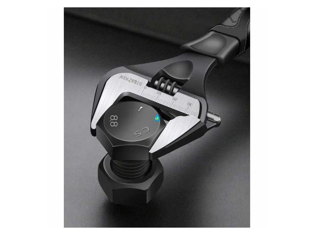 Kľúč je vybavený rozopínacími čeľusťami so šnekovým kolieskom, ktoré umožňuje presné nastavenie rozovretia čeľustí od 0 do 35 mm.To vám umožní dokonale prispôsobiť kľúč širokej škále matíc a skrutiek. Skrutkový mechanizmus zaručuje plynulé a bezproblémové nastavenie otvoru a výrazne tak uľahčuje prácu.