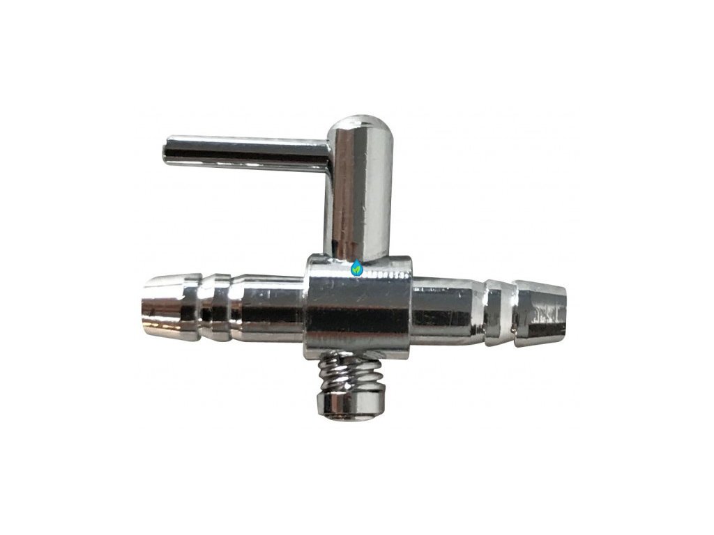 Kovový rozdeľovač s jedným ventilom regulujúcimi prietok vzduchu na hadičku 4/6 mm.
