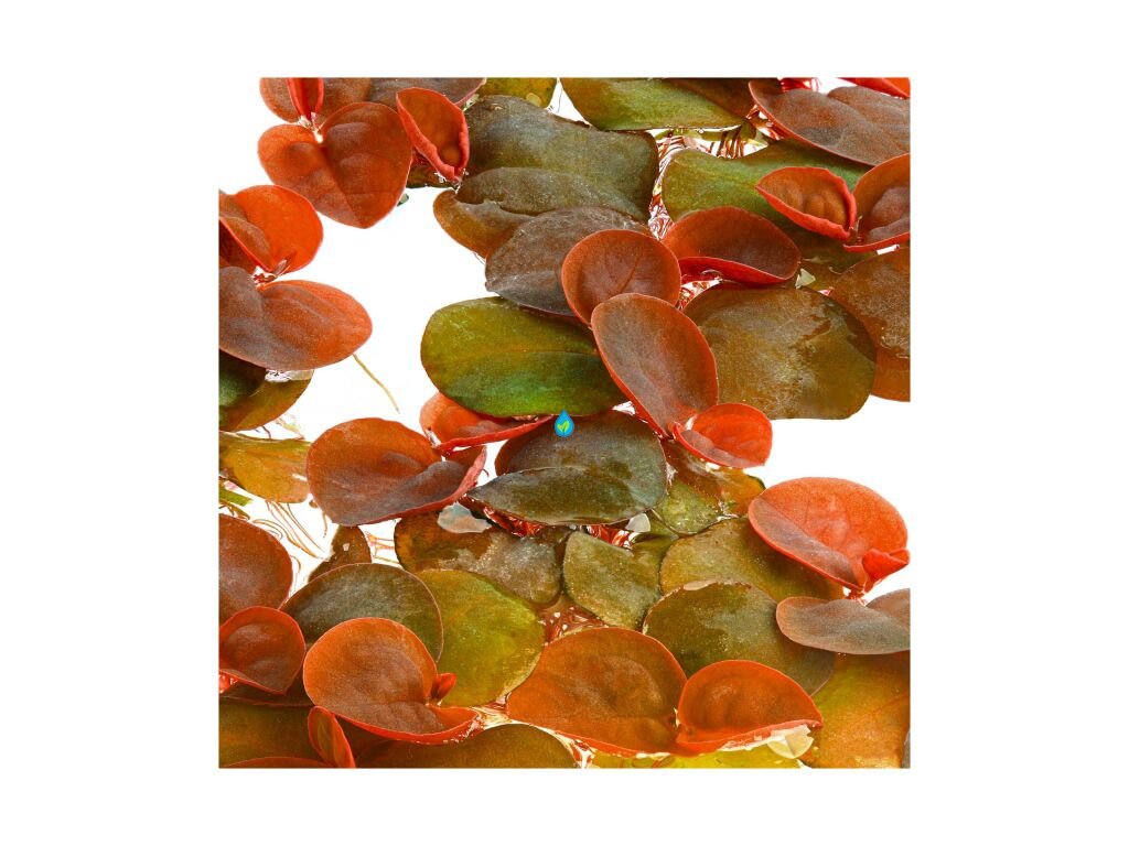 Vyniká svojimi okrúhlymi listami, ktoré pri silnom svetle nadobúdajú červený až vínový odtieň, a nádhernými červenými koreňmi, ktoré visia do vody.