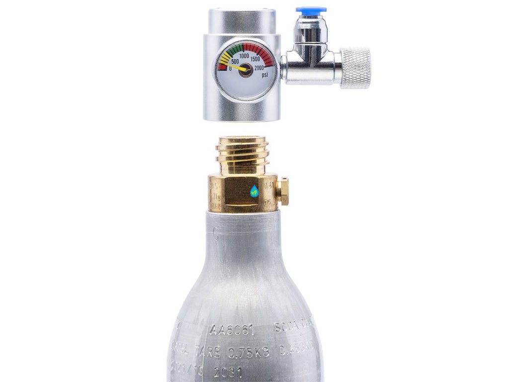 Je kompatibilný s tlakovými fľašami (zásobníkmi) používanými v systémoch Soda, ktoré sa používajú na sifóny sýtených nápojov.