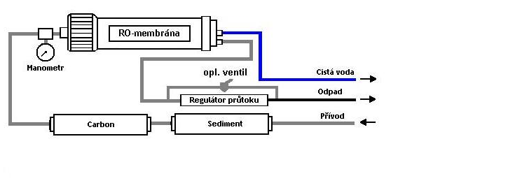 (Pri otvorenom oplachovacom ventile prúd vody intenzívne obmýva povrch membrány a všetka voda tečie do odpadu)