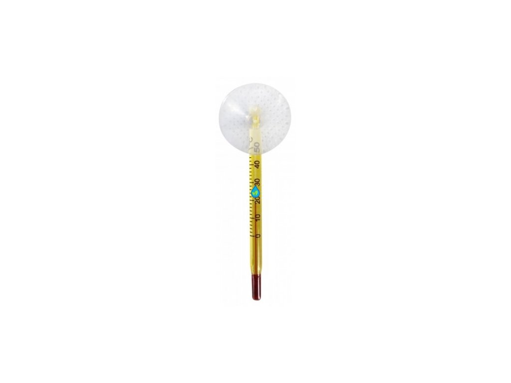 Akvárijný sklenený teplomer mini. Žltý, tenký, 9 cm s prísavkou.