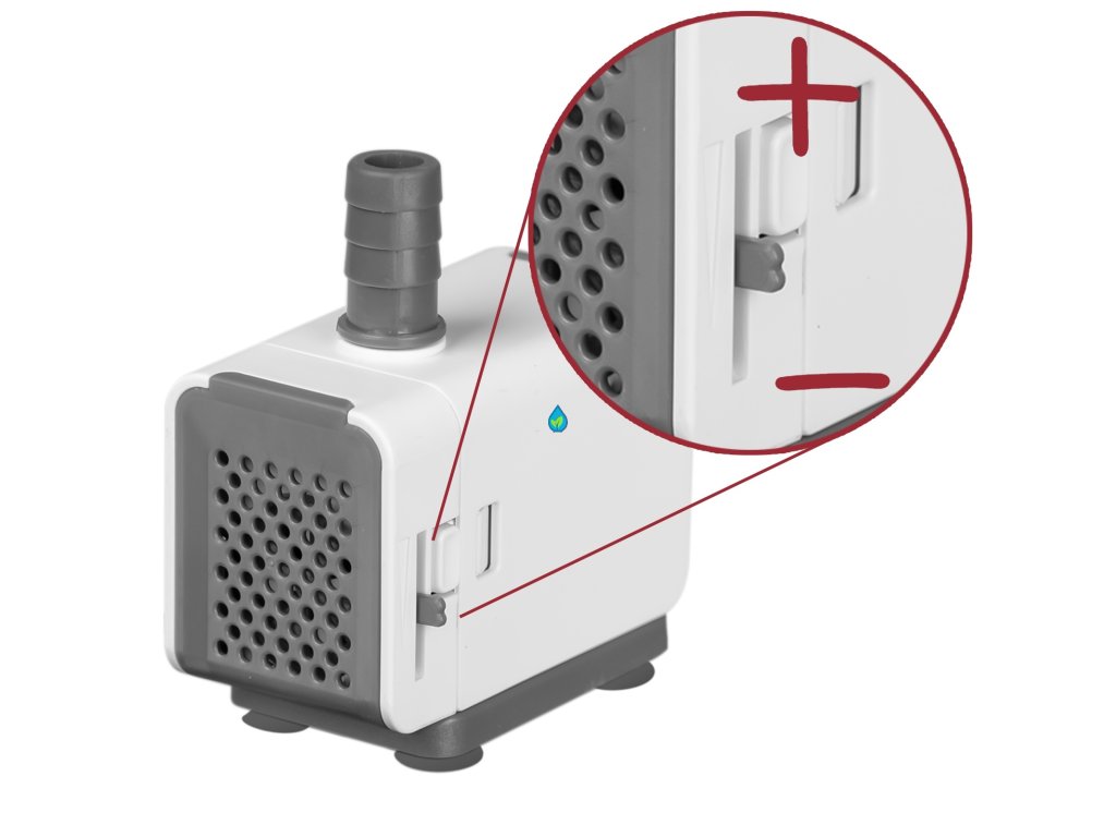 Pumpa má vymeniteľné konektory, ktoré umožňujú pripojiť hadicu alebo zlepšiť cirkuláciu vody spolu s jej okysličením.