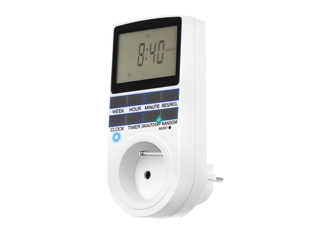 Plne programovateľná spínacia zásuvka s týždenným aj denným cyklom spínania.