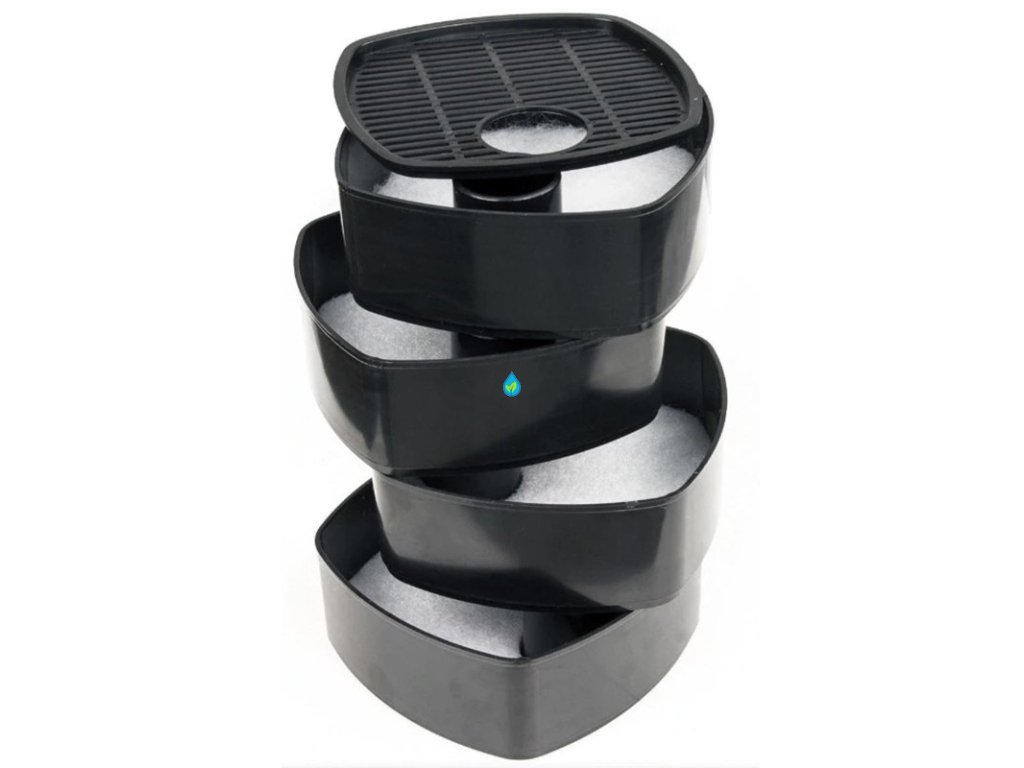 Filter je vybavený štyrmi košmi s filtrom. To uľahčuje udržiavanie filtra v poriadku a umožňuje vám prispôsobiť použitie rôznych typov kaziet potrebám akvária.
