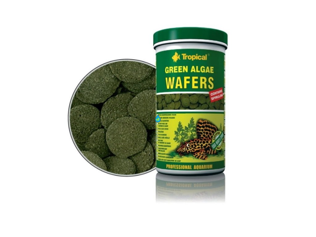 Green Algae Wafers je krmivo s veľmi veľkou hydrostabilitou (pri nasiakovanií vodou, udržiava svojou štruktúru a nerozpadáva sa), čo uľahčuje kŕmenie kôrovcov, a umožňuje rybám, ktorých papuľa má podobu prísavky so zubami, ktorými ryba škriabe potravu z tvrdých plôch, spôsob prijímania potravy blízky prirodzenému.