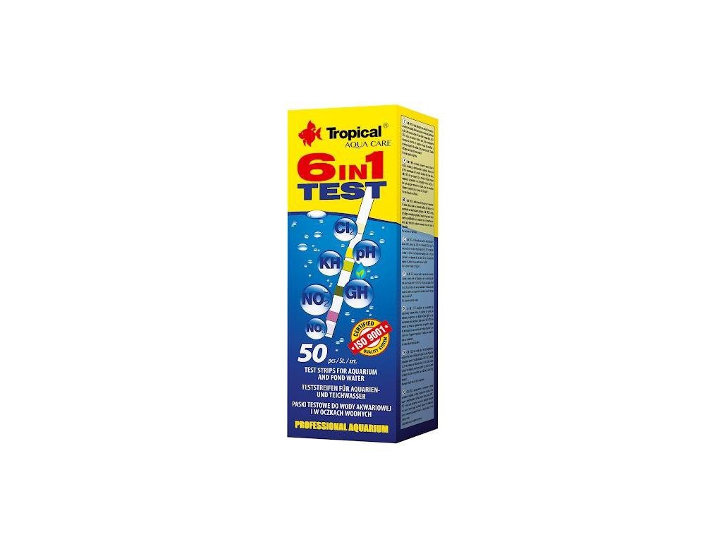 Tropical 6 in 1 test je určený pre meranie koncentrácie dusitanov a dusičnanov, celkovej a uhličitanovej tvrdosti, reakcie pH a tiež koncentrácie celkového obsahu chlóru v sladkej vode.