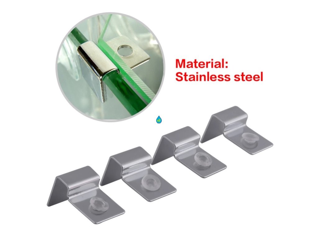 Umiestnením týchto kovových držiakov na bočné steny akvária vytvoríte úchyt na krycie sklá.